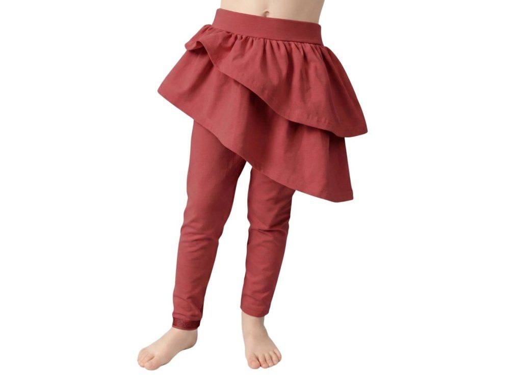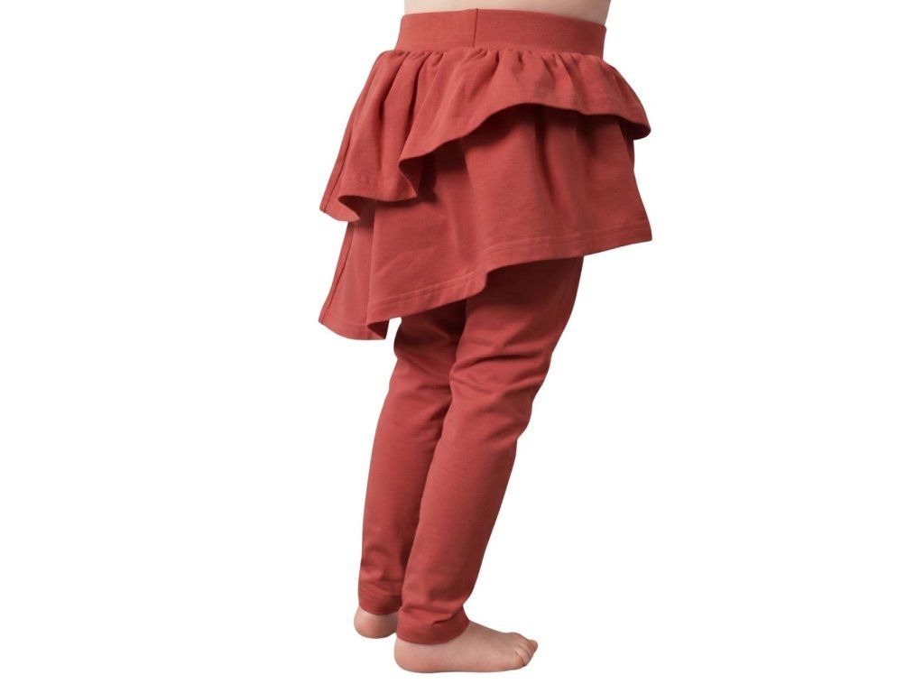 Bavlnené dievčenské sukňolegíny s volánmi brick