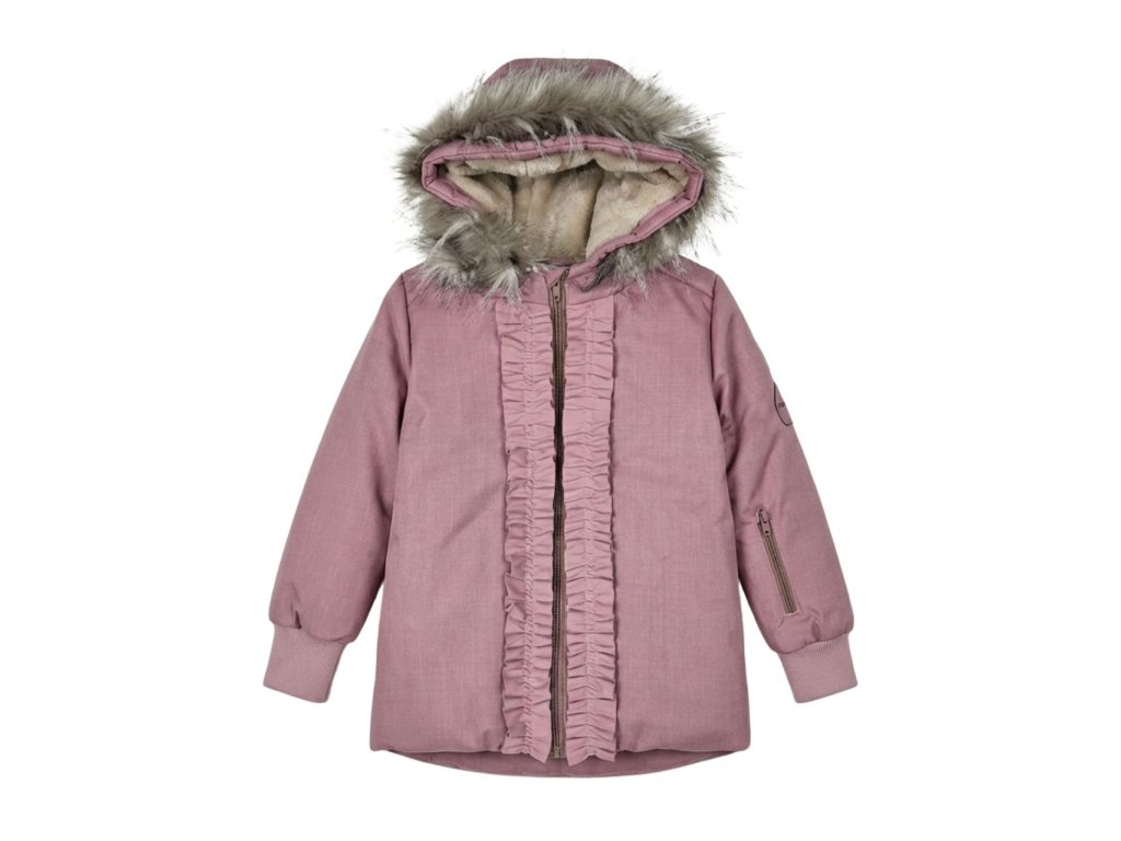 Bunda Pink Ruffle drží krok s každým dobrodružstvom – v meste, na ihrisku aj na zasnežených výletoch.