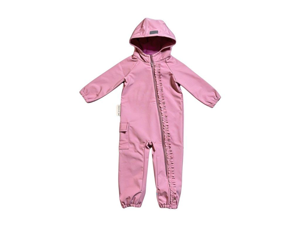 Detský softshellový overal s volánikom prechodný – light pink