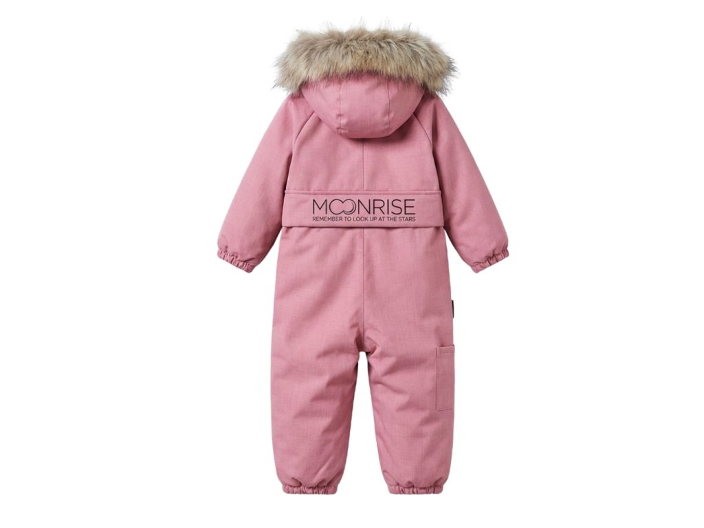 Detský zimný overal s umelou odnímateľnou kožušinkou na kapuci.